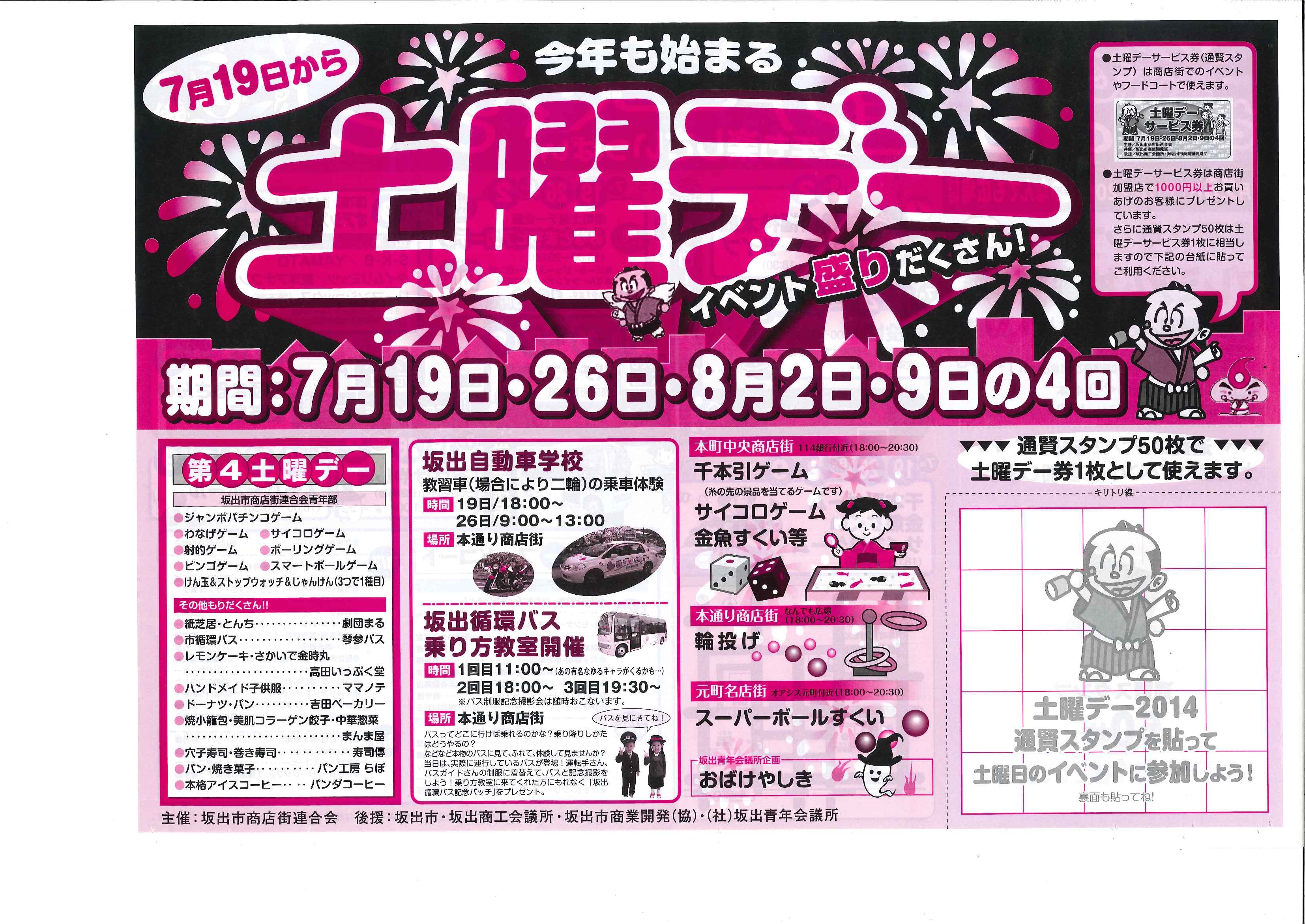 坂出商店街 土曜デー 2014年07月17日 Tweet 坂出商店街が主催しております、第4土曜デー及び夏の土曜デーに関する情報は坂出商店街 Facebookページをご覧下さい。 https://www.facebook.com/sakaide.doyou/