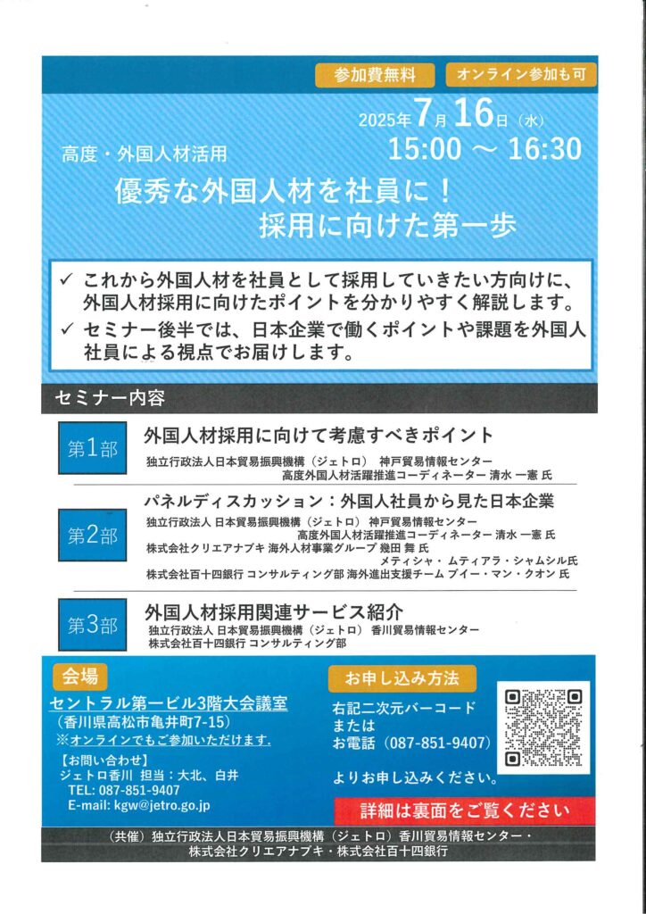 今後、外国人材の採用を考えていきたい、外国人社員をより増やしていきたいなど、外国人材にご関心のある皆様のご参加をお待ちしております。
