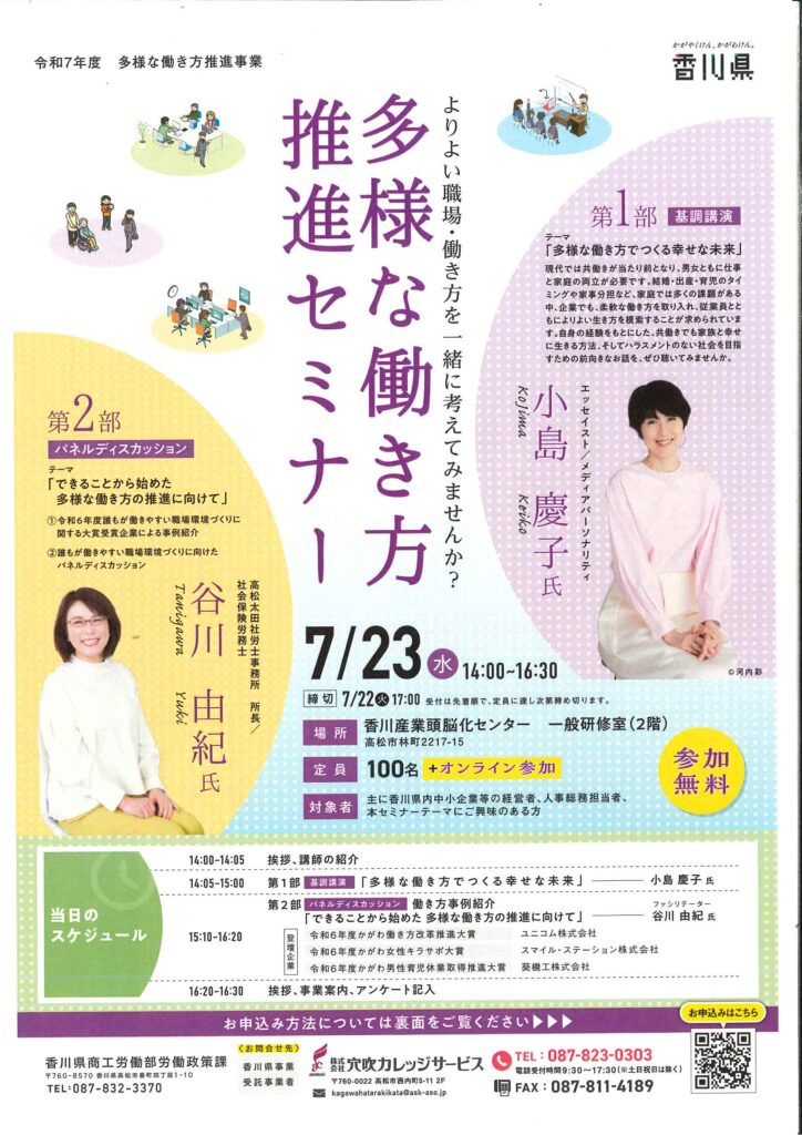 Home > セミナー・講習会 > 【香川県】多様な働き方推進セミナー ~よりよい職場・働き方を一緒に考えてみませんか?~ のご案内