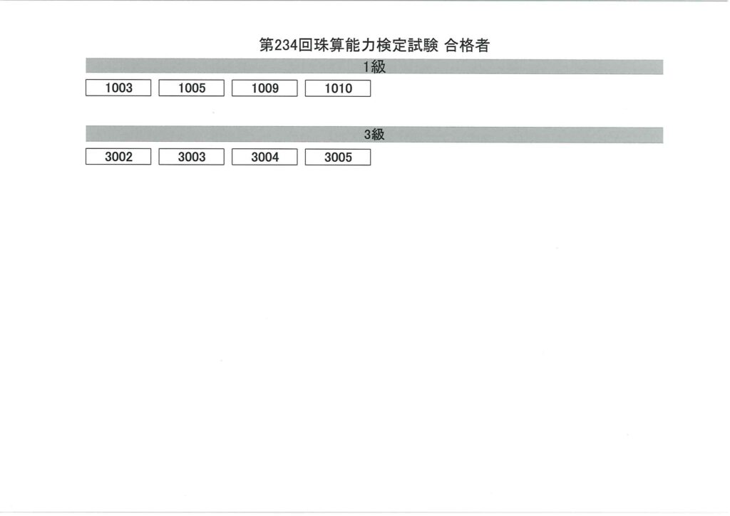 第234回  珠算能力検定試験 合格者(坂出商工会議所実施分)