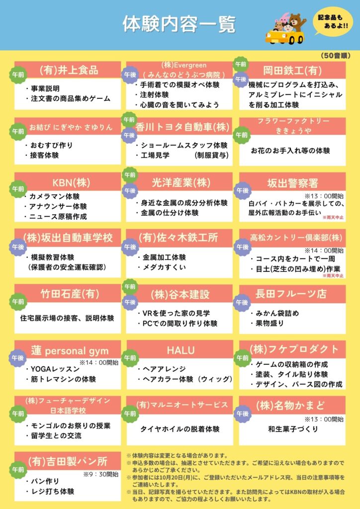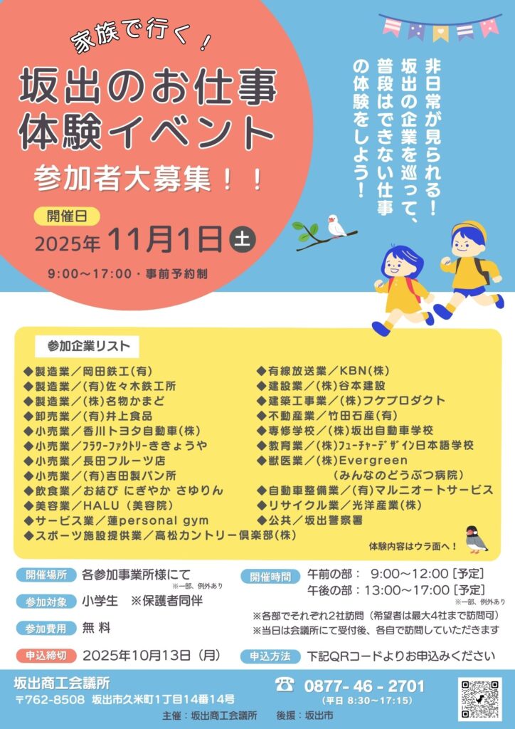 坂出商工会議所では、市内の小学生やその保護者を対象に企業紹介と職場体験を兼ねた「職業体験イベント」を開催します。