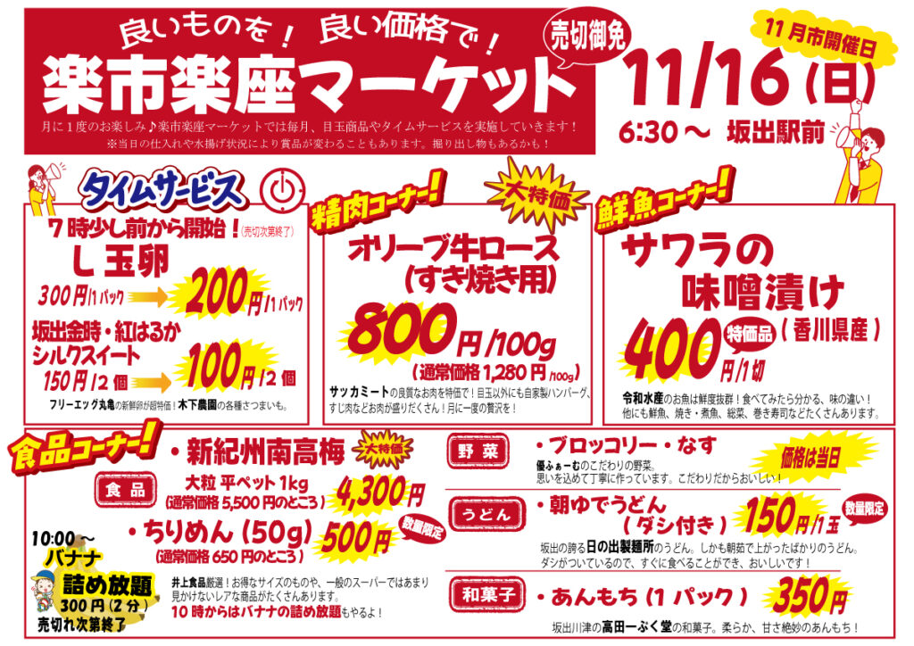 詳しくは駅近「さかいで楽市楽座」ホームページをご覧ください。