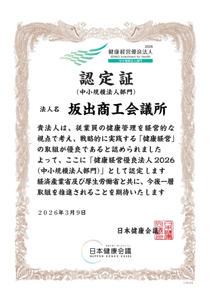 3月9日、当所は日本健康会議から「健康経営優良法人2026(中小企業法人部門)」に認定されました。