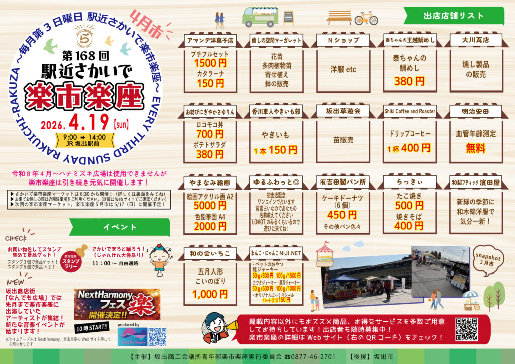詳しくは駅近「さかいで楽市楽座」ホームページをご覧ください。